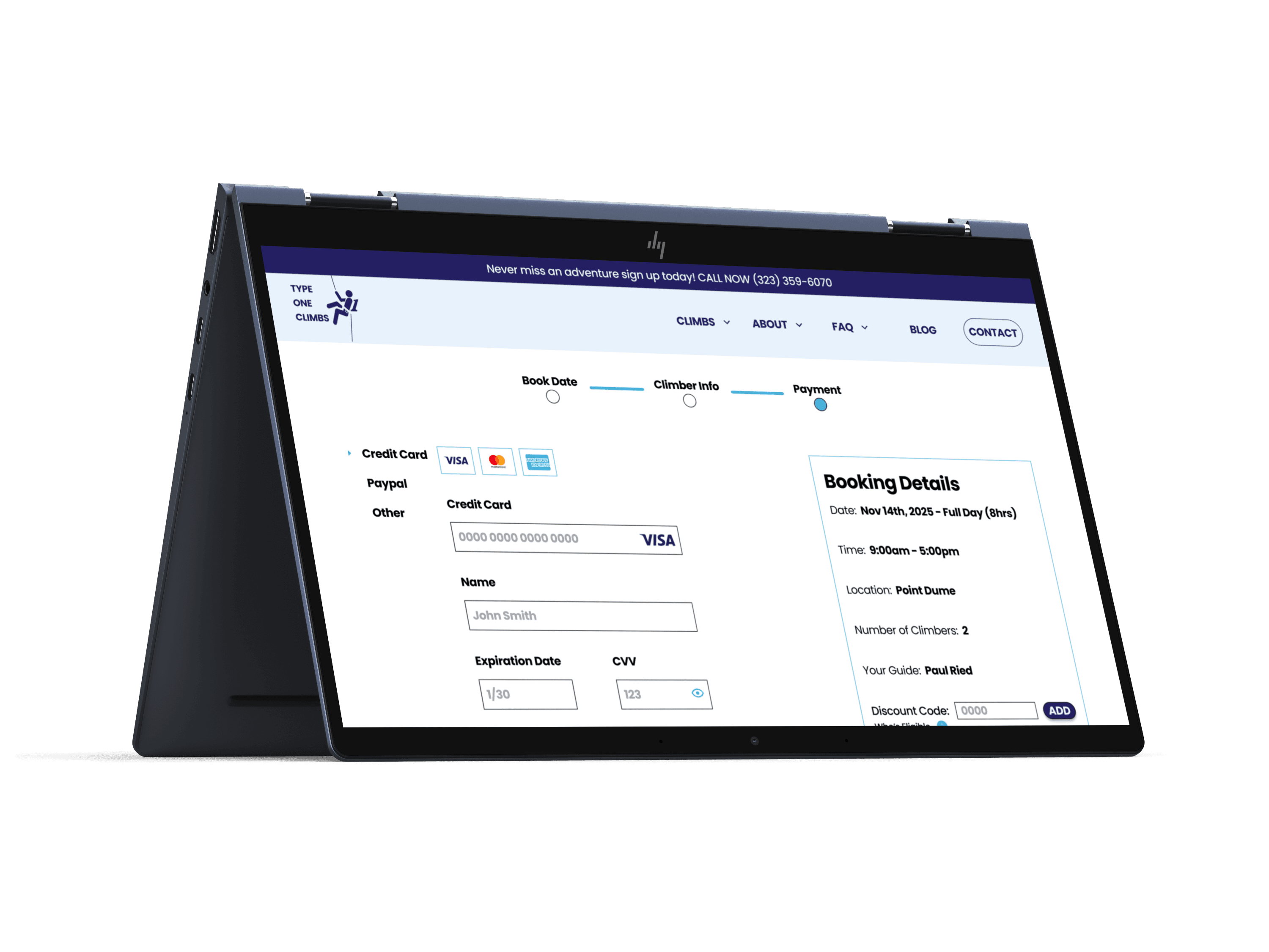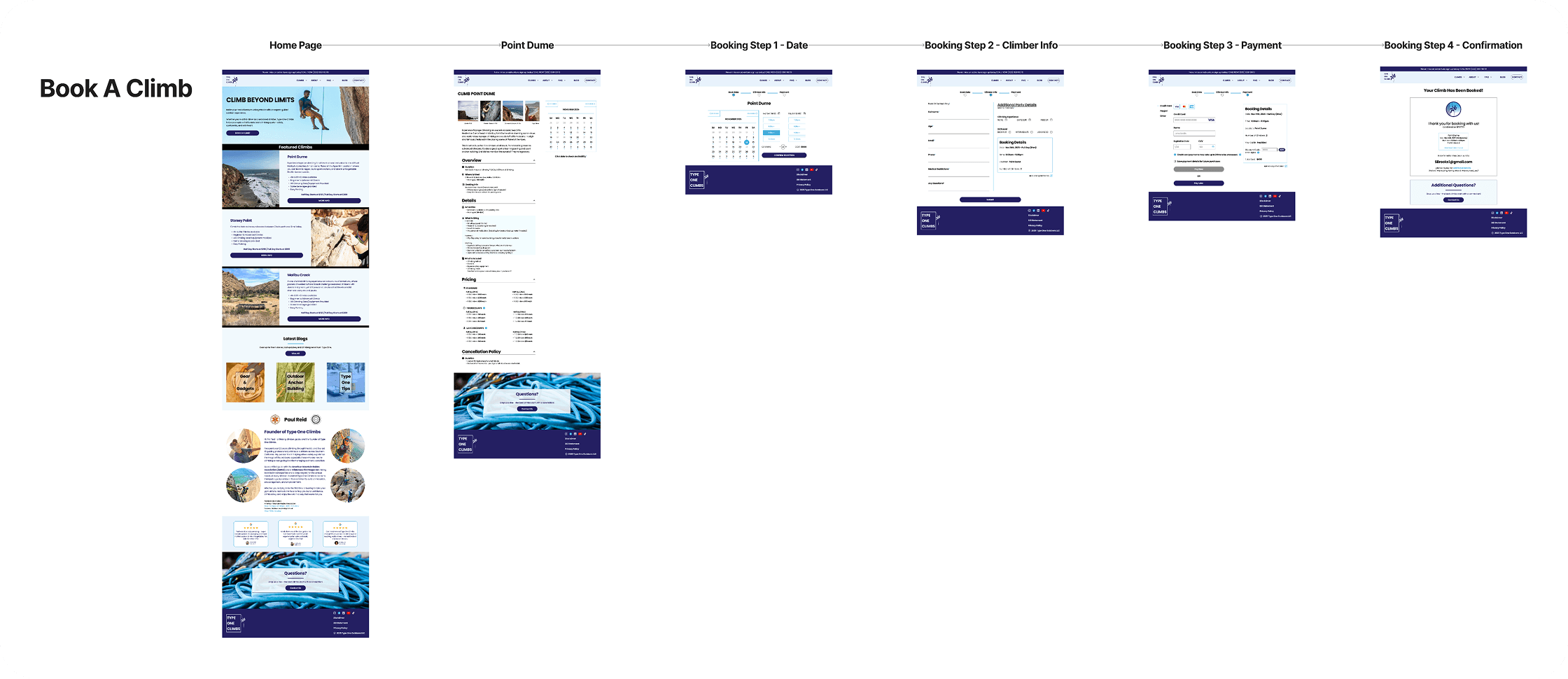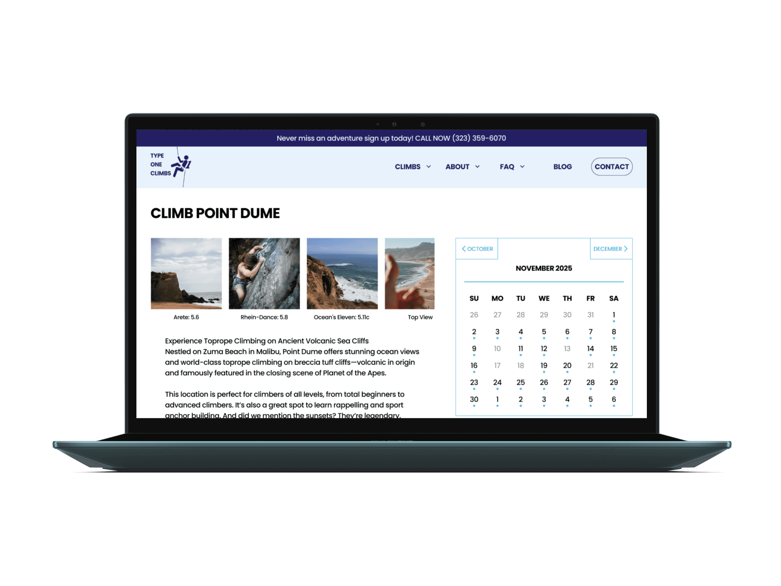Climbing is built on trust: trust in your rope, your partner, and your guide. The same principle applies when booking guided adventures online. Type One Climbs, a small guiding company in Los Angeles, had a website that felt outdated, hard to navigate, and lacking the credibility that convinces beginners to book.