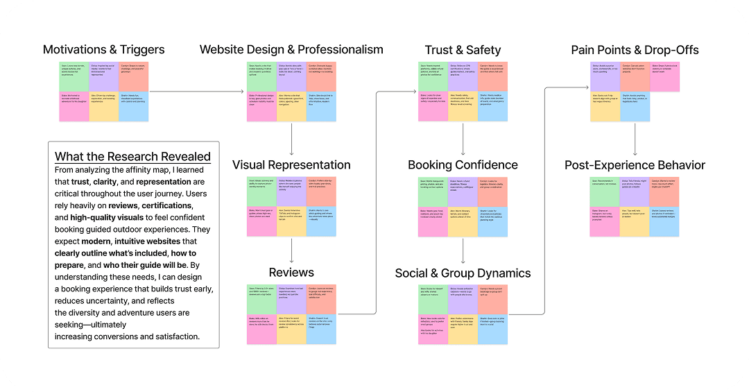 In my first meeting with Paul, the founder and lead guide, he shared his vision for growing the business and his frustration that the current site was not helping new climbers take the first step. That conversation shaped my hypothesis: if the booking experience felt clear, modern, and trustworthy, more beginners would feel confident signing up for a climb.