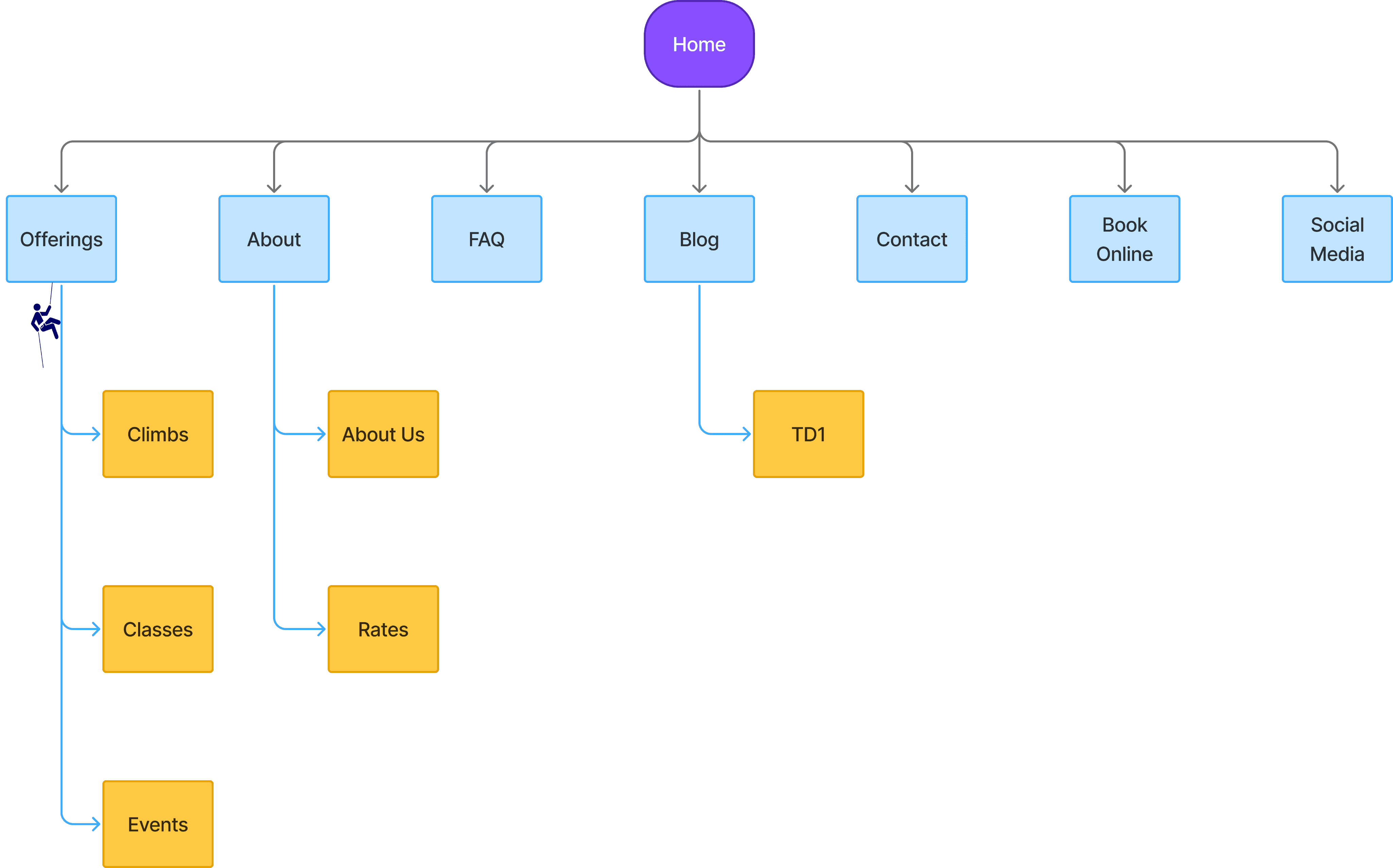 Over the course of three months in spring 2025, I partnered with Paul to redesign the site. My goal was to create a beginner-friendly booking experience that built confidence from the first click while still capturing the adventurous spirit of climbing. This was my second capstone project at Designlab, and it was both personal and professional. Climbing is a passion of mine, and I wanted to challenge myself with a real-world project connected directly to the outdoor space I hope to work in.